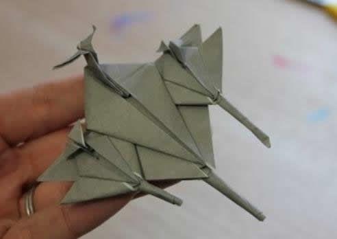 2. 中级飞机折纸:适合有一定基础的朋友,教程中会涉及到一些复杂的折叠技巧,如直升机、战斗机等。